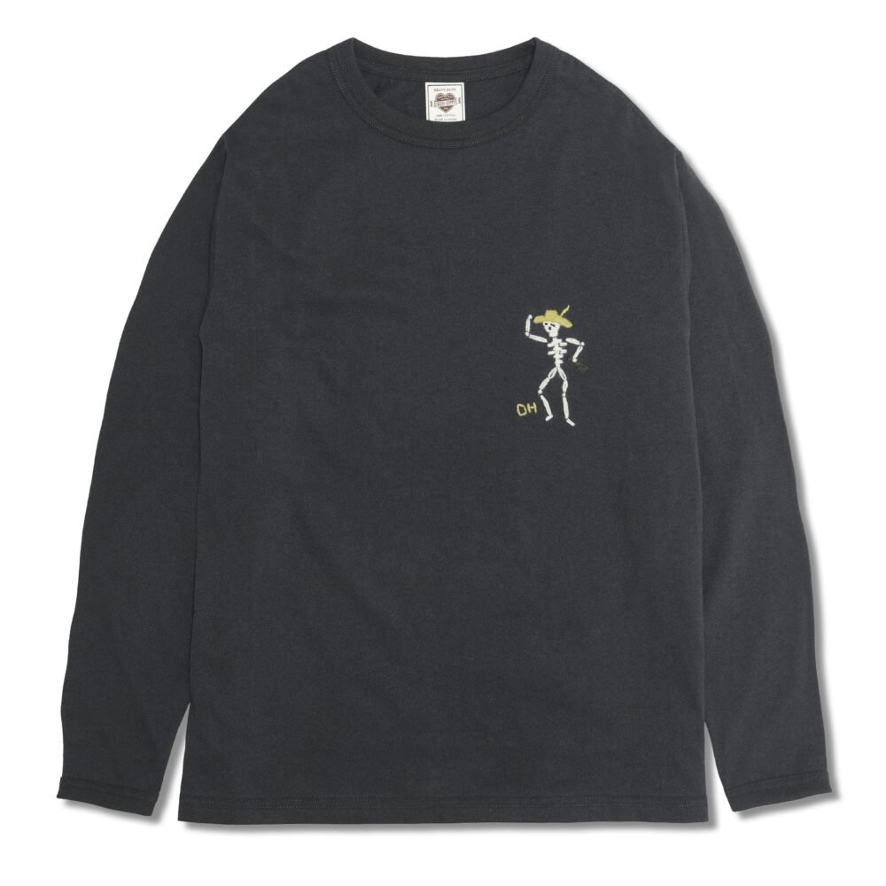 DH-HEAVY L/S TEE hand-embroidered skull (S.BLACK)