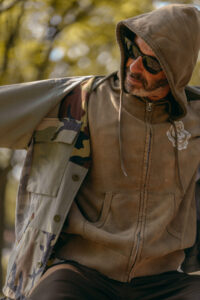 ヴィンテージミリタリーのジャケットやパンツを解体し、パッチワークにて再構築。
