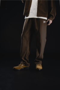 ジャージっぽくもスラックスのようにも履きこなせます。