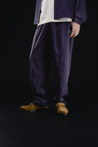センタープリーツによって上品な印象を演出したトラックパンツ。